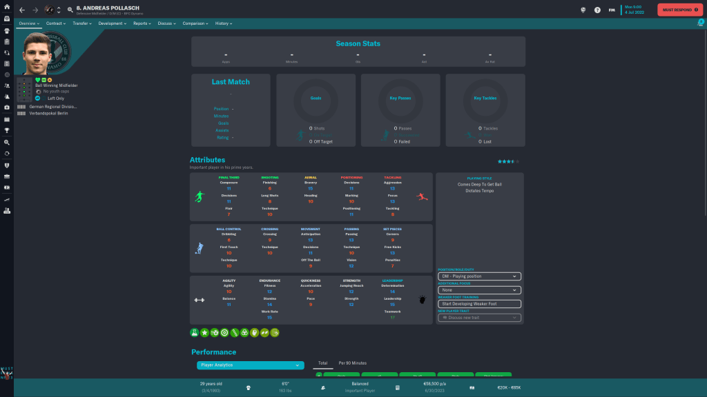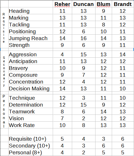 So what do we have at the end? Slightly better than average crossers, not the best dribblers, average first touch, passing, technique, anticipation, composure, and concentration; better than average decision making and determination, OK Off the Ball, positioning, team work, work rate, vision, and better than average Athletically speaking.