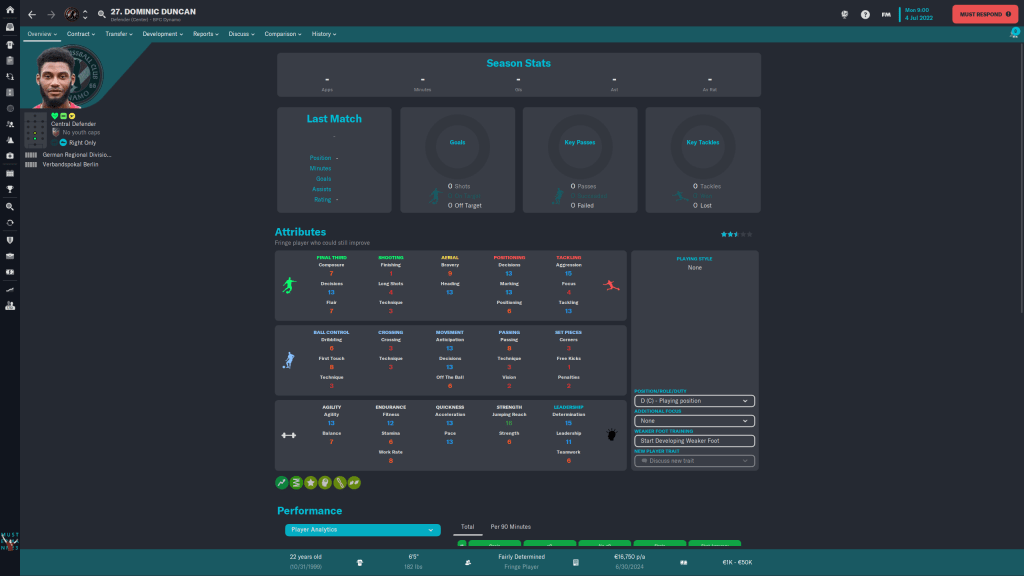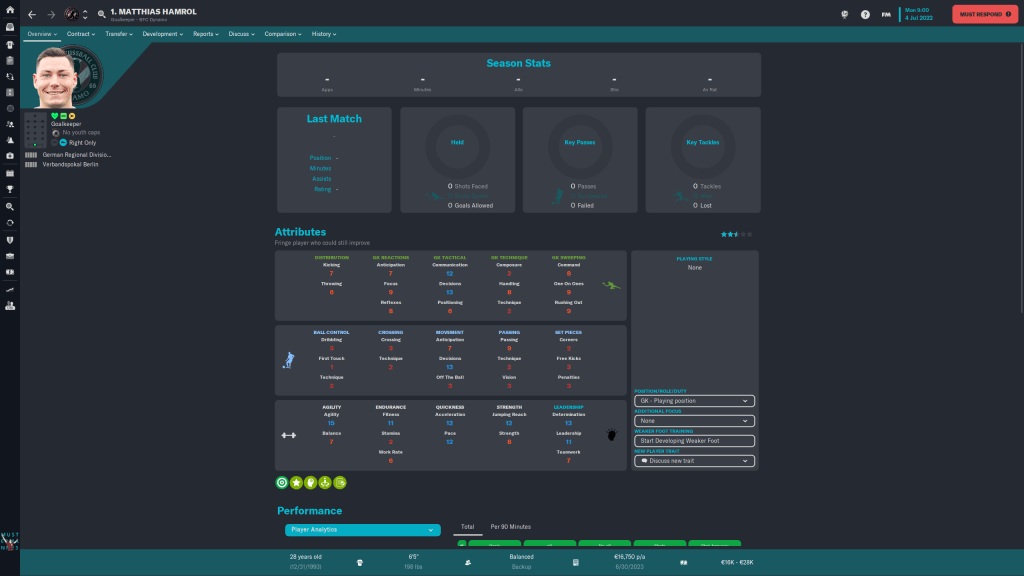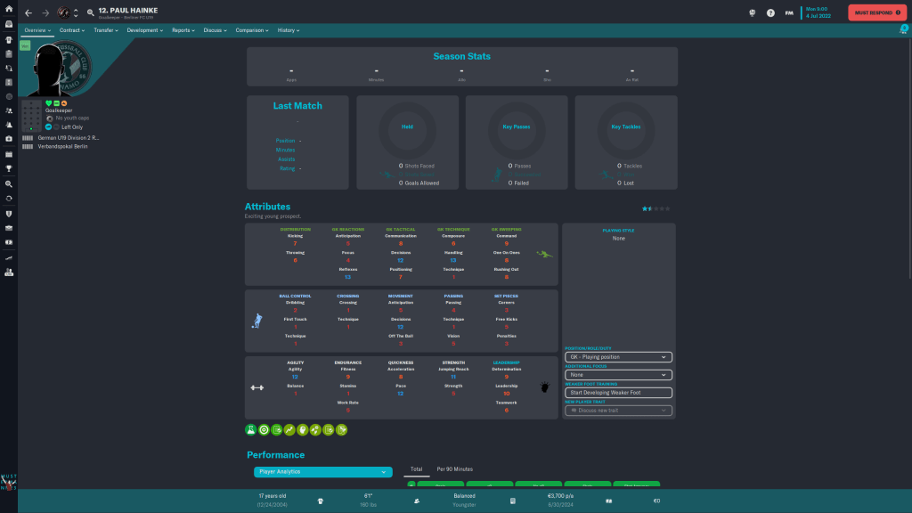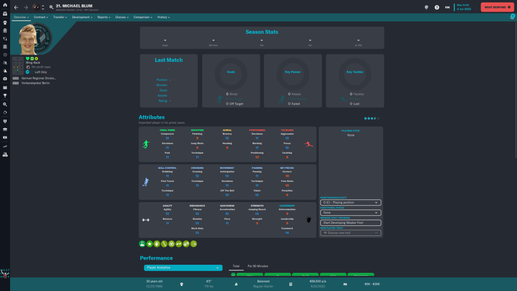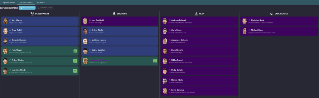I think this is a good group of players for the level of football we are playing at. We’re the 4th league of German Football, and to be honest I think anything over 15 for an attribute is either going to be a gift, or an anomaly. At this level of football, you aren’t looking for players who are “Good” at everything, you are looking for players who are “Good” in those areas their position demands of them. What I mean is this:
