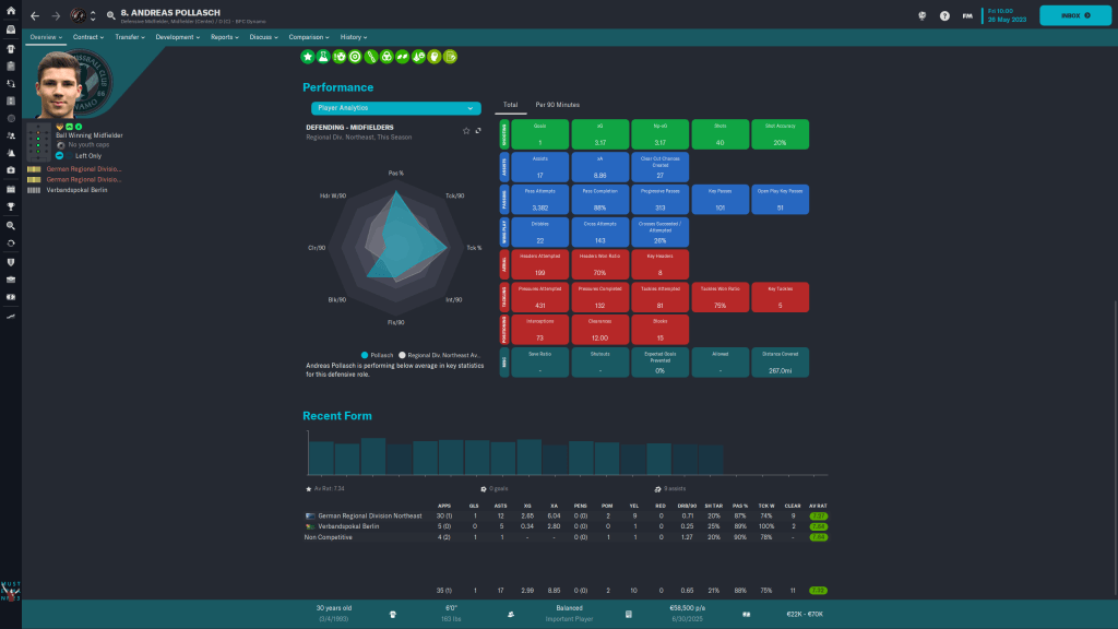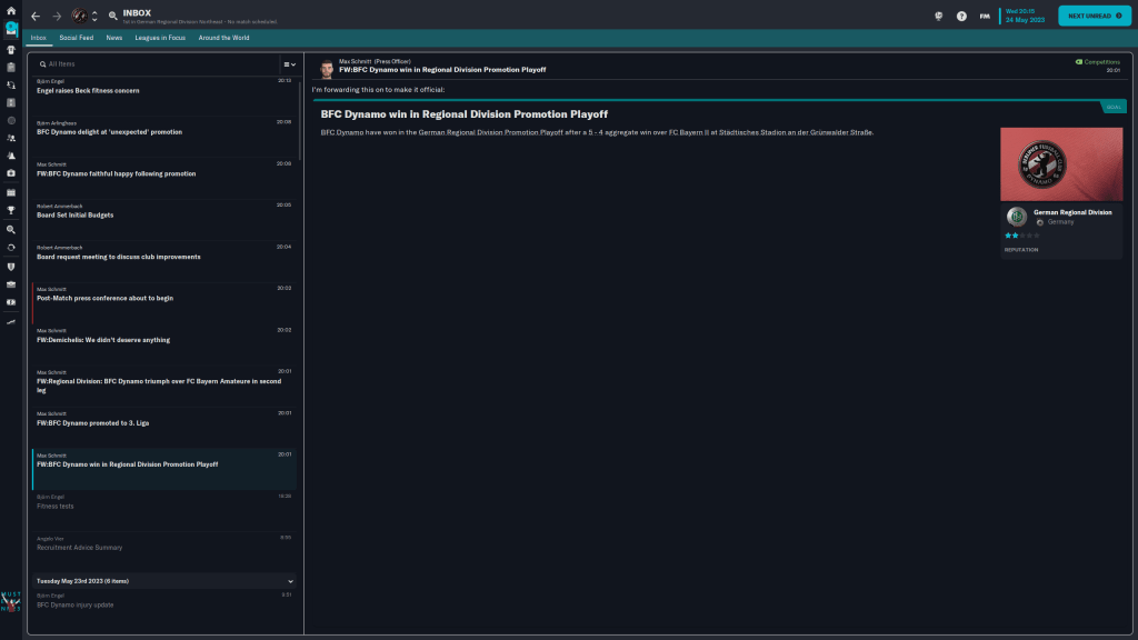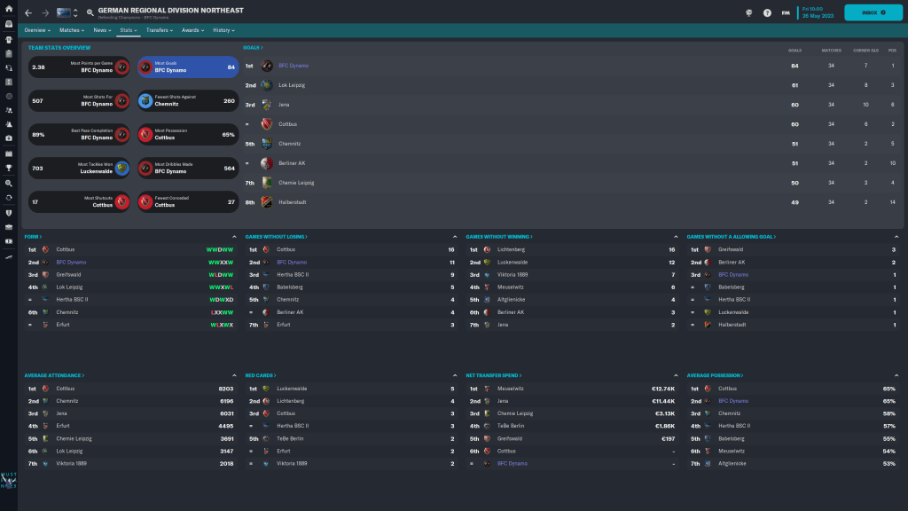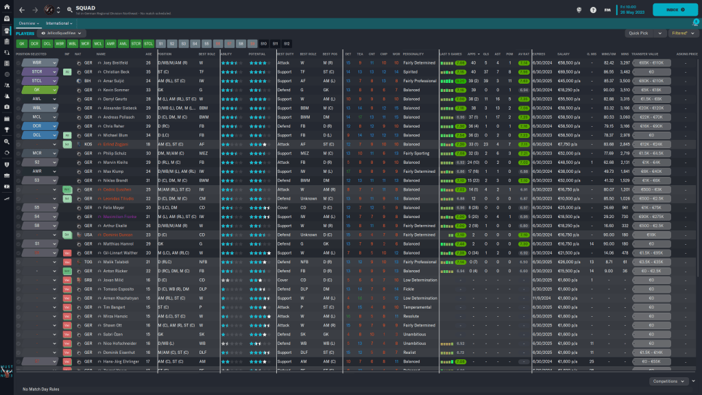 3. Liga awaits. We’re a pro Squad now, with not a lot of money, a smart bet would put us down as relegation candidates. Because of the finances this year I haven’t been able to scout like I have wanted to, and we may not have enough in next years budget to scout extensively either, which means we are going to have to get….creative with the scouting. And the accounting.