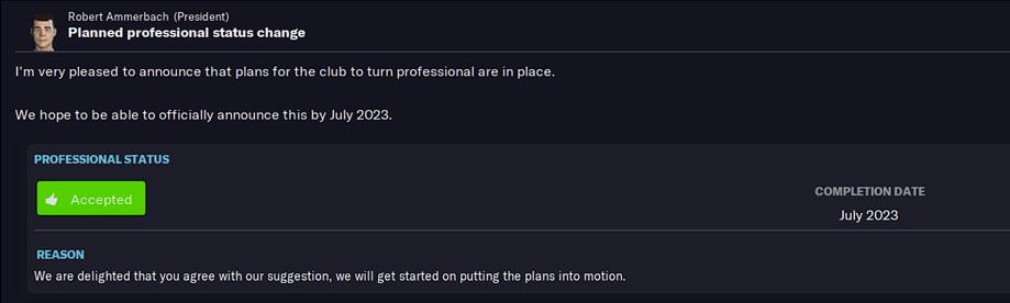 I am not going to say no to that, it just means I have to renegotiate all my players contracts, and since the ones I want to keep just won themselves promotion, it could be difficult to meet some of their wage demands.