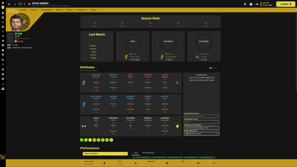 Simões has the potential to be better than Fuchs, I think he will be, it’s just a matter of what attributes improve the most, and which stay the same. It’s one of the frustrating things to see when you get a good youth player with potential, and after five years of training and games his Balance goes from 4 to 7…I don’t think Simões is in that boat, but…