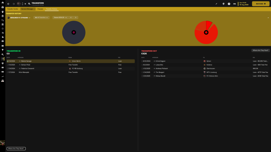 But the summer transfer woes carried over to winter. With no money in the transfer budget and no room in the payroll, a transfer or even free signing was out of the question. Any player with any ability worth signing on a loan deal their parent club wanted either an outrageous monthly fee and all of their salary covered, or even when I thought I had a player coming on loan without a fee and no salary, they decided they didn’t want to come to Berlin. Cottbus, I meant Cottbus, I keep forgetting we are spending this season there.