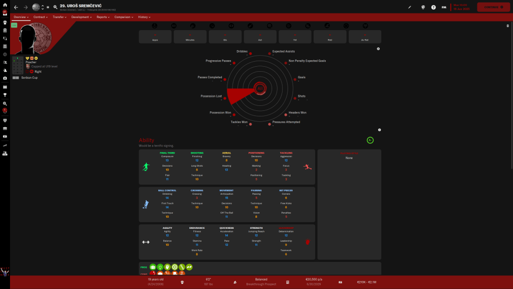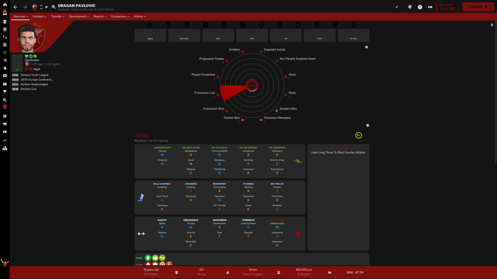 Quite the determined young man, isn’t he? Maybe not the best reactions or technique, but his distribution, tactical acumen, and agility are nice, and he’s bang average most everywhere else. That’s not a problem, really it isn’t. He’s here on loan with us paying nothing for him, which already makes him head and shoulder better than everyone else we looked at so far.