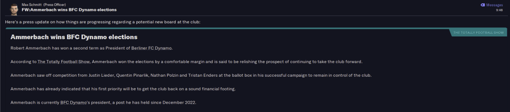We bounced back against Osnabruck, a Hamzic penalty kick in the 90th giving him a hat trick and us the victory. I made no comments about the VAR decision to award the penalty…Neither side wanted to win when we played 1860 Munchen, so in typical FM fashion neither side did. With almost two weeks of good training, a healthy squad of first teamers, a decent position in the standings I felt good about our chances against Dusseldorf, who were one of the better teams in the Bundesliga 2 and were tipped for promotion.