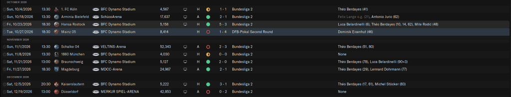 Koln is a solid club, so drawing to them isn’t bad. Bielefeld would have been a draw if not for an Lange OG and some heroics in goal by Lavellee. Thumping Hansa Rostock looks good on paper, until you take a closer look and realize that as bad as Ingolstadt is, Rostock is worse and are also relegation candidates, so them putting three on us is troubling. Mainz thumping us in the Pokal was no surprise, finishing the year out strong though was. Something clicked for Theo, and he started converting a lot more of his chances into goal. I would love to say it was the Rostock game, but I think it was the Schalke game, where he overcame a pretty tough defense to score. The 1860 Munchen game was a snoozefest, but against Braunschweig he had numerous chances before the keeper missed one. Both Schalke and Braunschweig are gunning for promotion, but if the want to win the League, they are going to have to beat Dusseldorf. And seeing as how the score in that game could have been 4-0 them, that could be a hard ask.