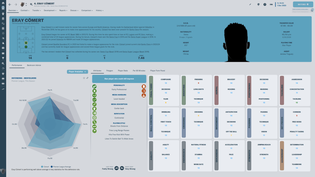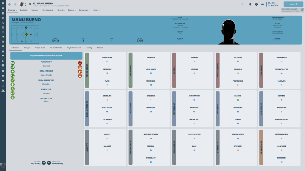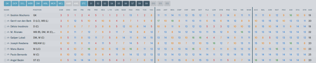Quintilla is going to be on the sidelines until January though, a twisted ankle has the 4 star current 26 y/o in the physios office. Quintilla can also play D(C) quite well, and I expect him to get game time at both. At 5’9″ he is not the most physical of defenders, but he more than makes up for any deficiens there with his very good Mental and Technical attributes.