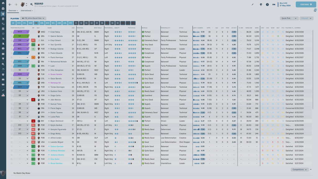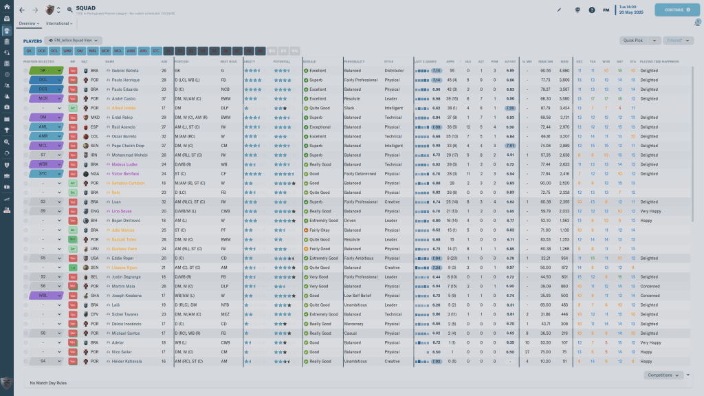 March was quiet, as we beat Arouca and Pacos de Ferreira, and then April was…frenetic. Our youth intake was pretty solid all things considered, with Michael Santos and Gervasio Cymbron both 4 ½ star potential candidates. Players who’s contracts were expiring were still wanting too much money, and I was pulling out what was left of my hair over some of the negotiations. Games wise, beating Casa Pia was expected, as they were bottom of the table, but only by one goal was disconcerting. Portimonense held us off in a 2-1 loss, we beat Rio Ave 2-0, and Benfica beat us easily 3-1. However, a week later, we beat Braga 1-0, and with 4 games left, we were in 6th place, fighting for European football.