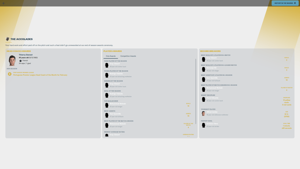 I don’t know that losing to Porto threw some sort of switch to get the team to buckle down and come together as a squad, but not losing ion the next 8 games was quite the accomplishment. Yes, it took extras time to beat Varzim in the Cup, but we came back to draw against Famalicão and Casa Pia. The year also ended on a high note for me, as I was voted coach of the year, and I turned down interviews from Lyon and Sassuolo.