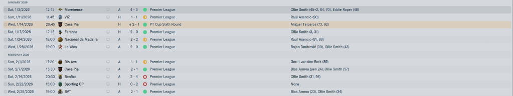 A 4-0 win at Estoril, beating Gil Vicente 2-0 at home, beating Chaves 2-1, beating Vizela 1-0, getting our revenge against MRT by beating them 2-1, when January ended we were 5-0, with 11 goals for and 2 against, and climbing the table