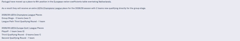 3rd Place is Europa League Football, and given that Benfica ran away with the league in an “Invincible” season, and Braga was 10 point’s behind them, that it took a last day victory for us to even finish 3rd is galling. Not that we ever had a shot at second place, but still, had we lost, yes we would have been in 6th place and been in the Conference because Benfica won the Cup, but it still feels like we threw something away.