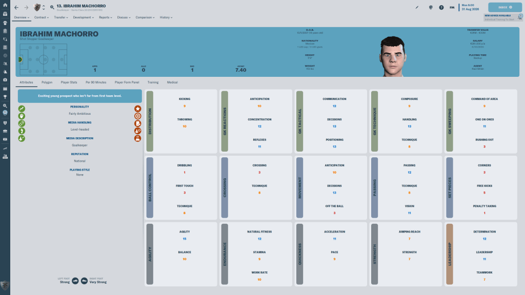 I had a plan for Ibrahim Machorro. I saw his name pop up on a Screenflow result. A 19 year old keeper starting for his countries senior squad can mean different things depending on the country. If he was from a smaller nation, you might took a glance and thats it. But when that nation is Mexico, currently ranked 13th in the world, and he’s keeping a healthy Raul Gudinio and Carlos Acevedo on the bench? That warrants a closer look, and when the midtable team he is on isn’t asking for a Kings Ransom in transfer fees, if you have it you pay it. And I did, setting a record for fee’s paid. He’s maybe at best a year or two away from being better than Batista, so I was going to play him in the cup games and maybe a few spot starts. Instead he became the teams first team keeper four weeks into the season. How did he do? Read on to find out. 🙂