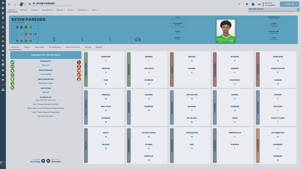 Former Vfl Wolfsburg left back Kevin Paredes signed on a free. The American International isn’t the tallest or heaviest, and he’s not a fan of big games, but for the formation we play in, his skillset and Playing Style really suit us. I doubt he will get a lot of goals, but I can see double digit assists in his future.
