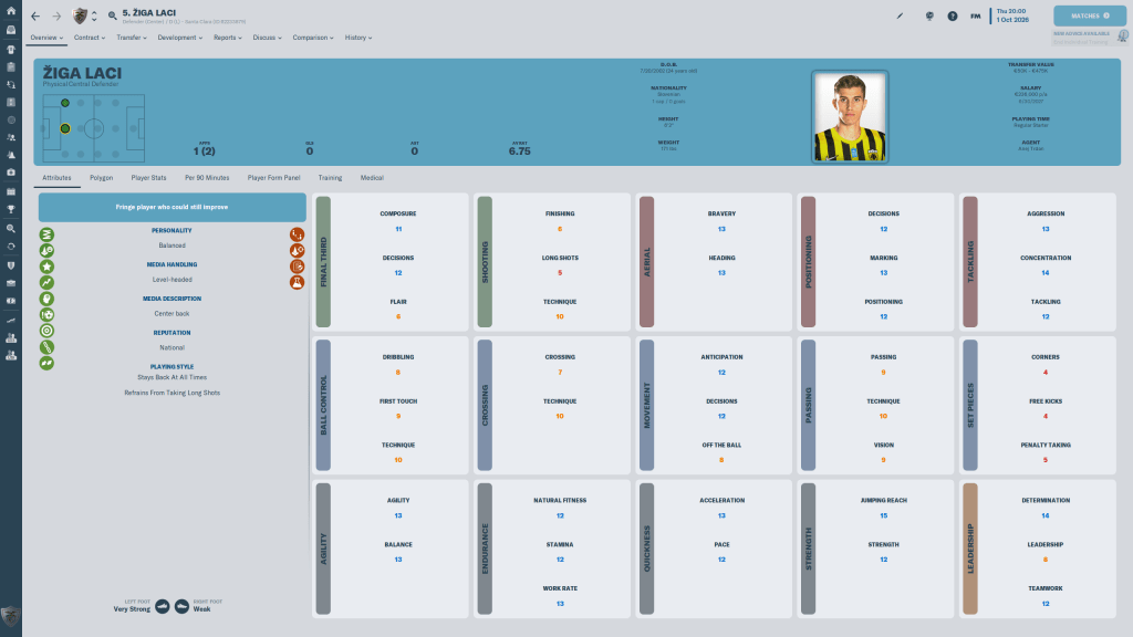 Žiga Laci is a depth purpose signing more than anything else. AEK wanted very little for him in terms of salary and playing time, he agreed to be a fringe player, and I plan on using him as a substitute more often than not, but we be comfortable if he were to start more than a few games at D(C).