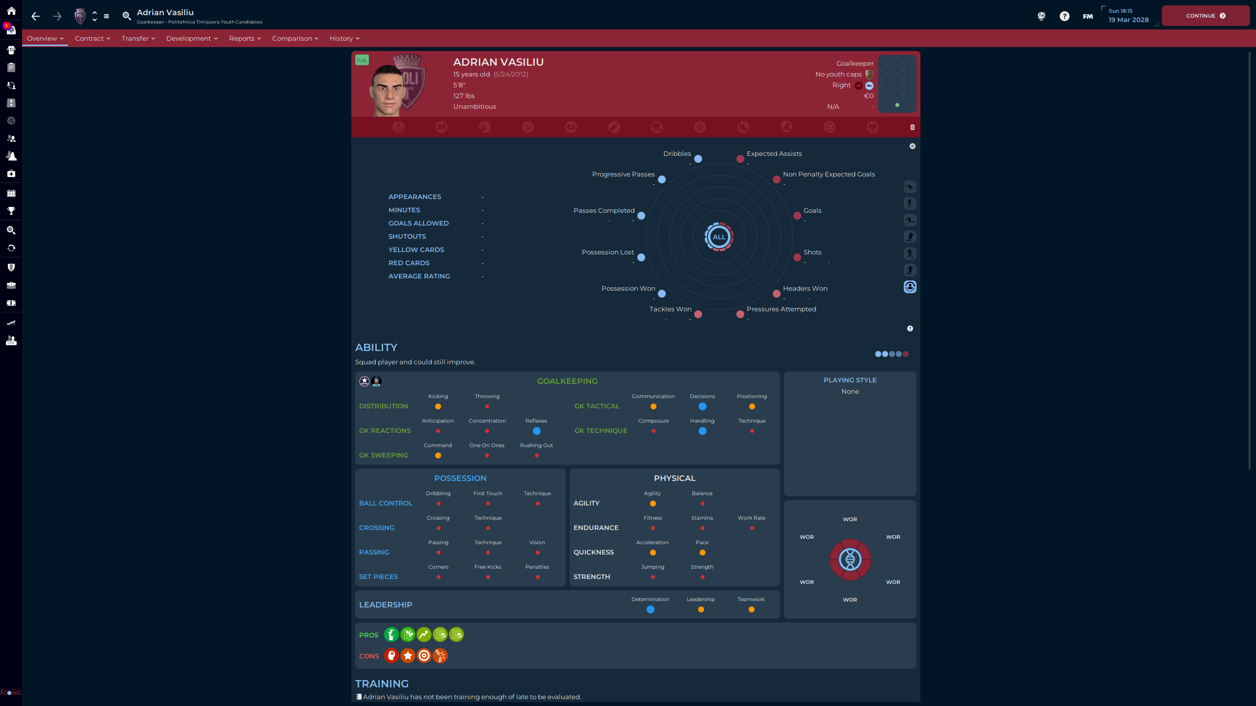 Tiberiu Alexandru, Class of ’25, is the next Keeper in waiting, but Florin definitely has first team potential. The problem is how do I get rid of this whole ‘Low Self Determination’ Issue. I could try and get him in a good mentoring group, but he also needs game time to improve, maybe a loan when he’s older will help?