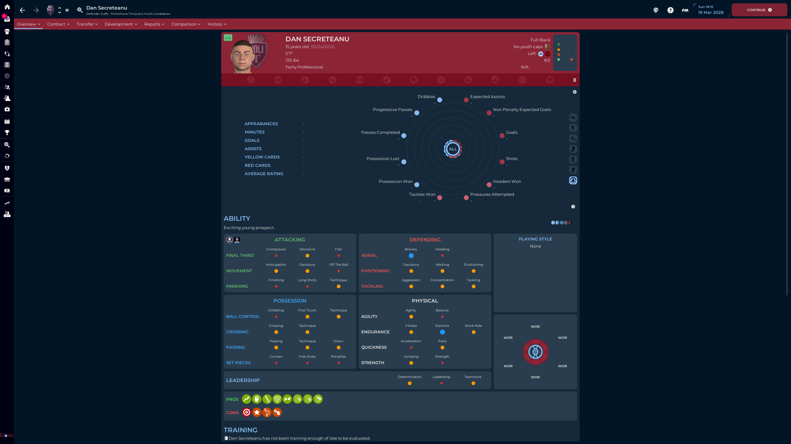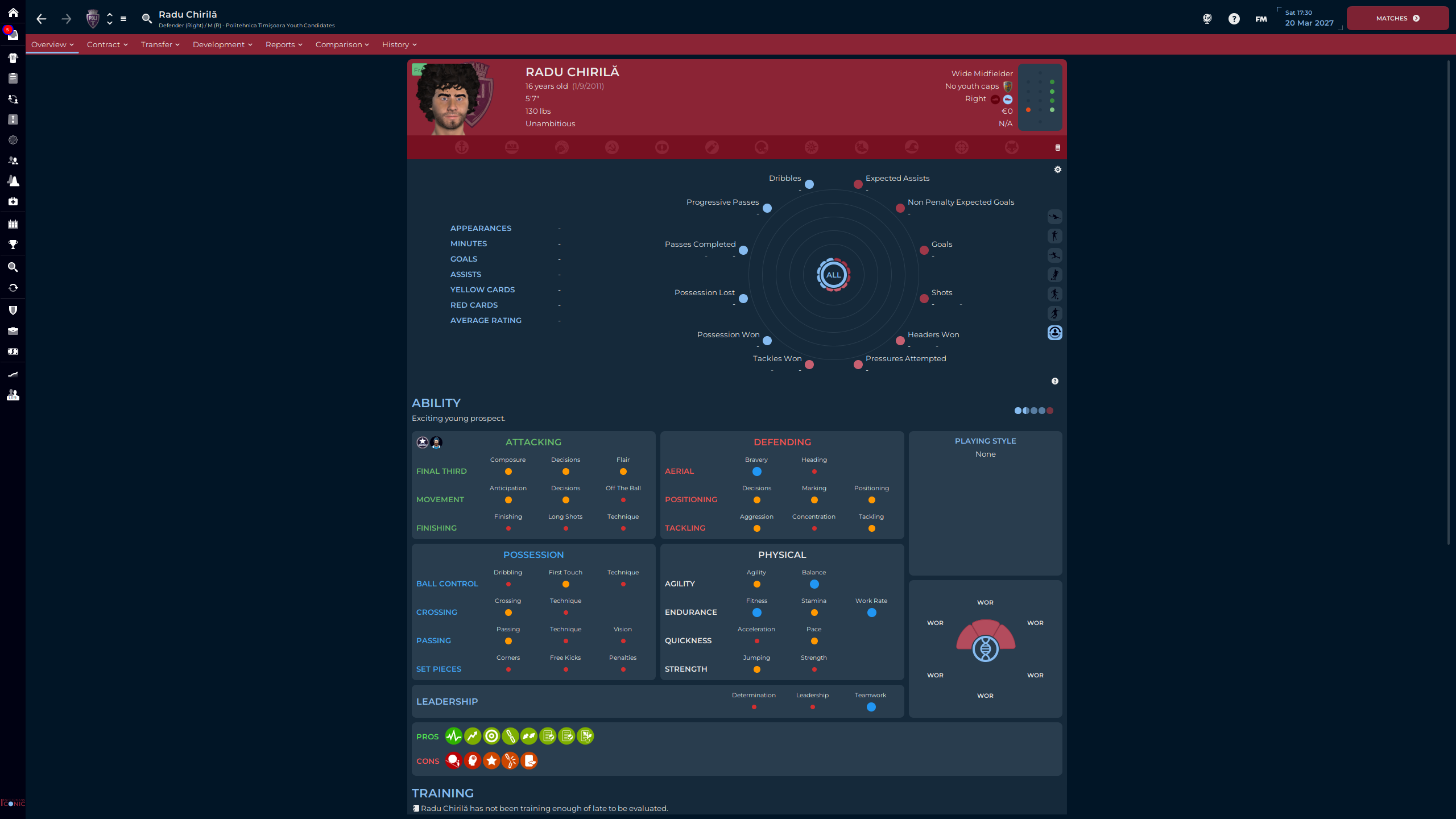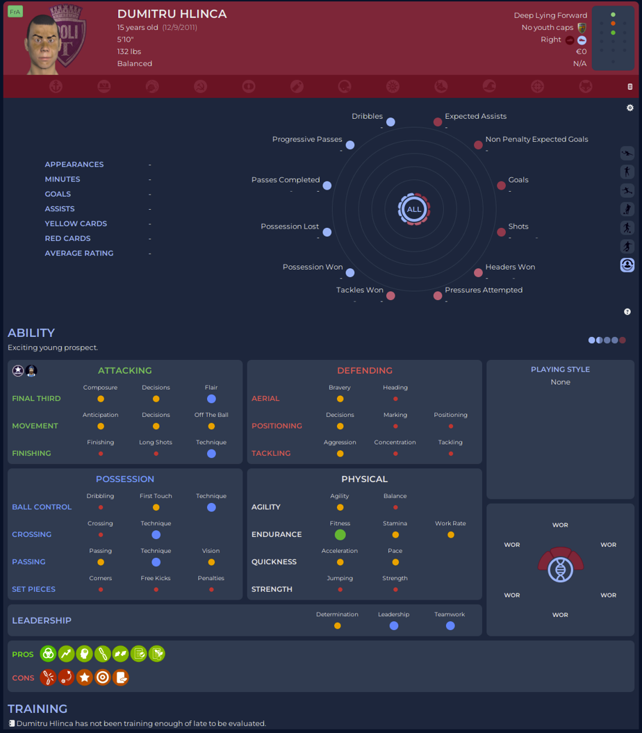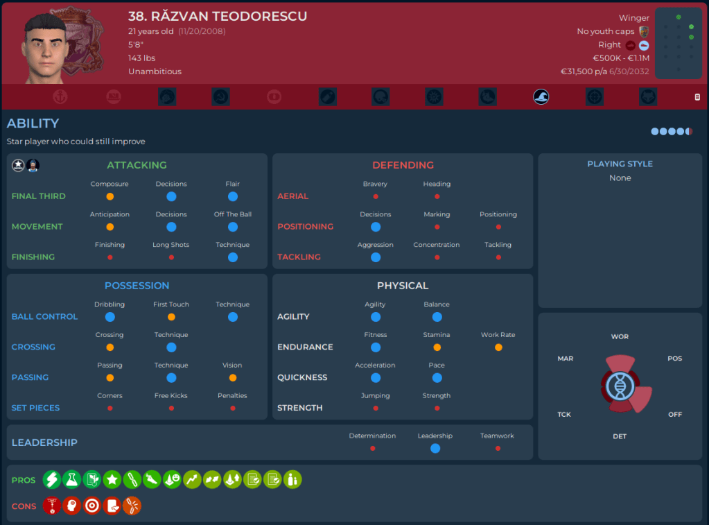 Răzvan Teodorescu was part of the Class of ’24, right before I took over. Attribute wise, for this level of football, he’s Bril. But…