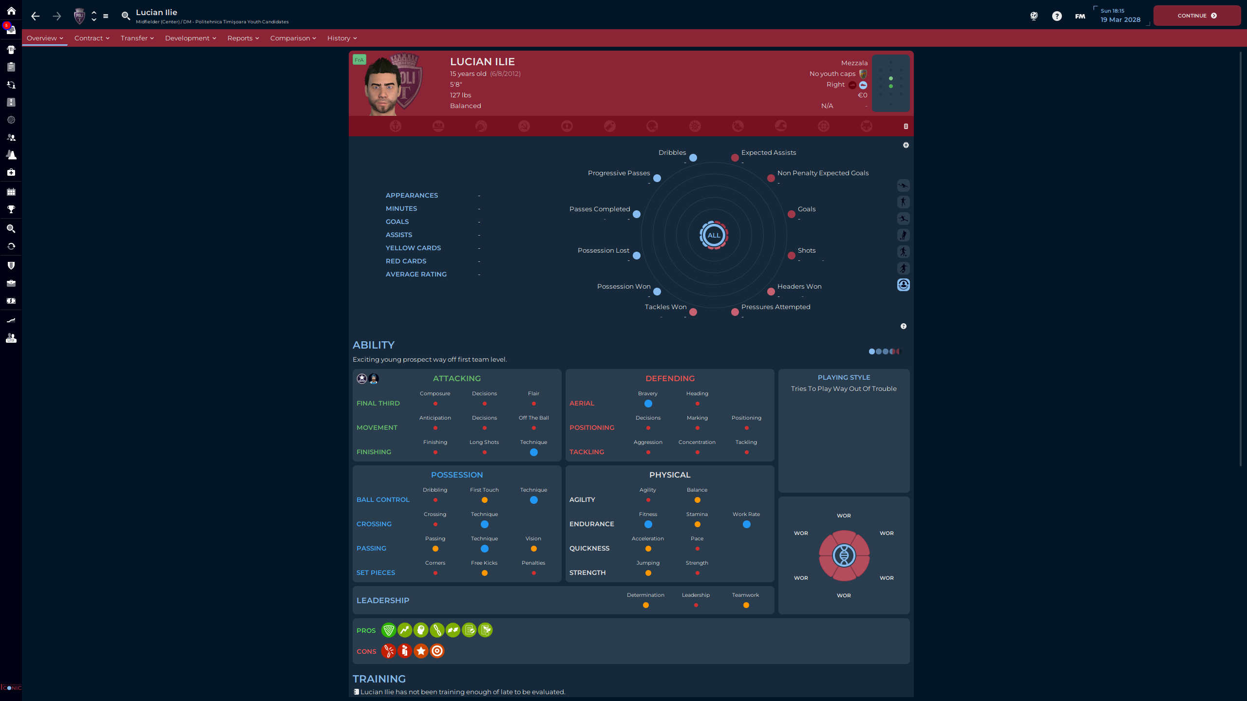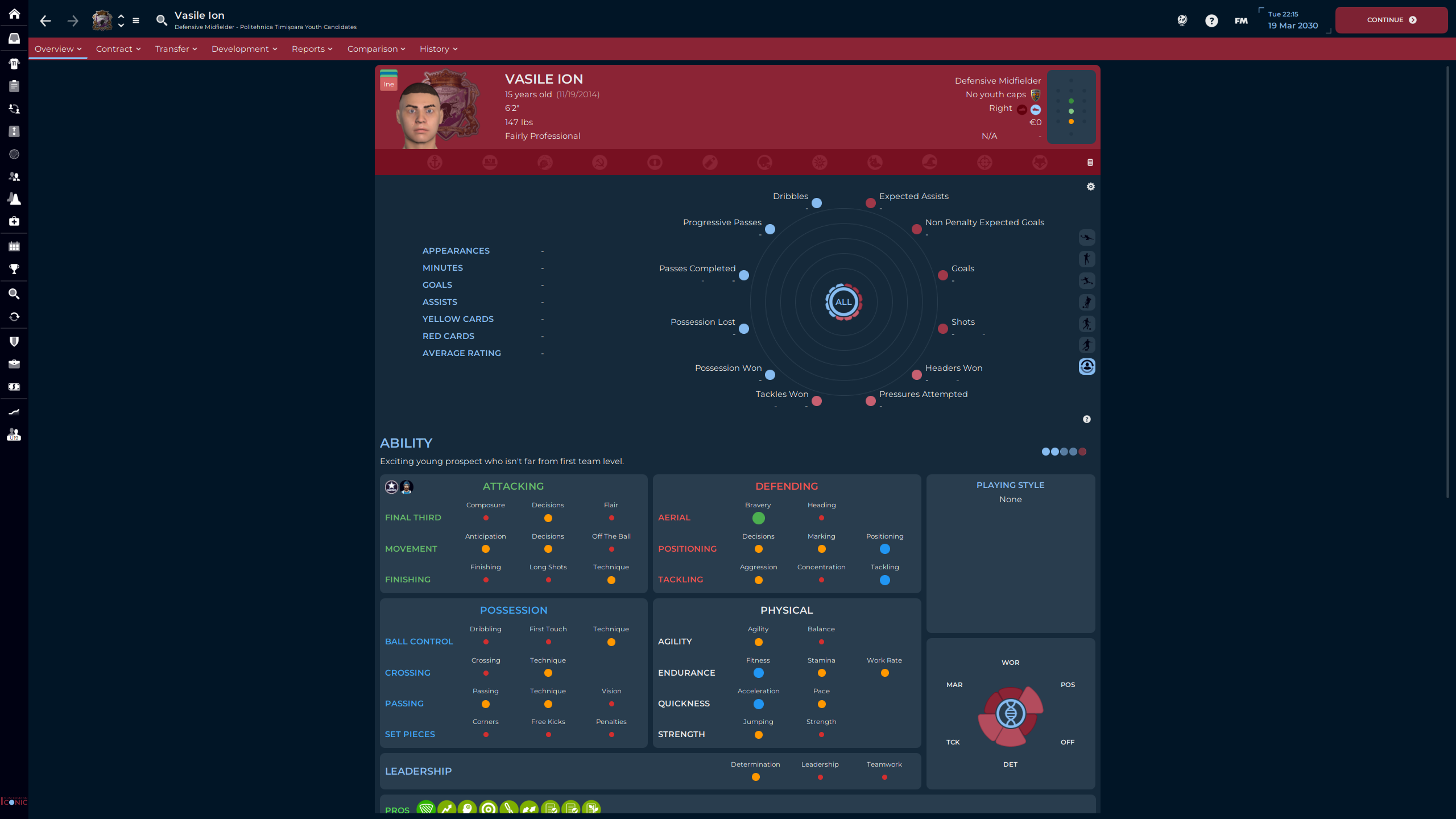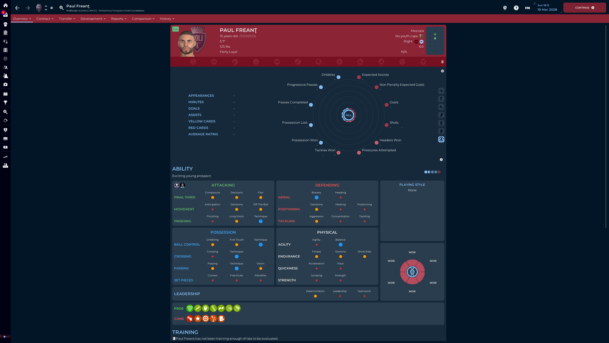 Răzvan Teodorescu was part of the Class of ’24, right before I took over. Attribute wise, for this level of football, he’s Bril. But…