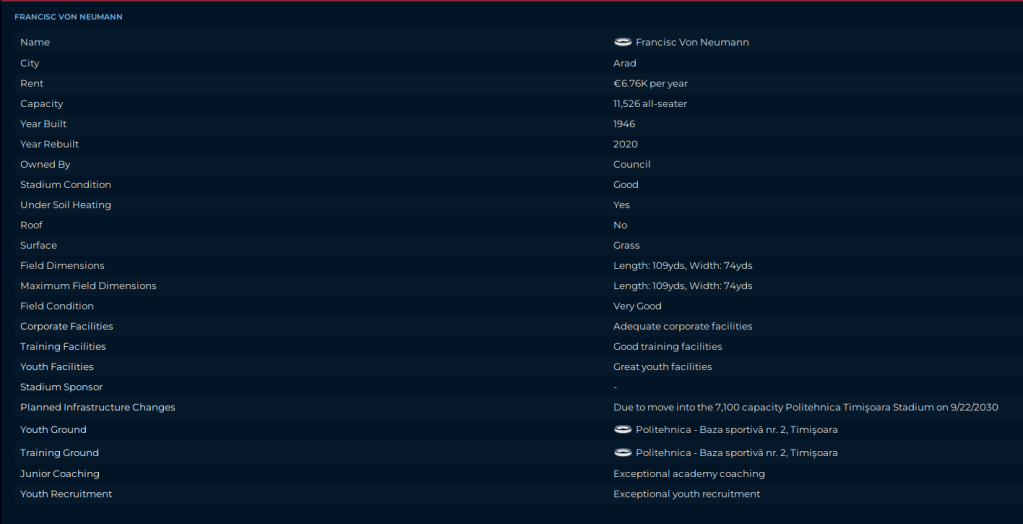 The one thing that has worked in our favor is that our success has allowed us to recruit better domestic based coaches, and our success, and lack of player related expenditures, has left us with healthy finances and a board willing to spend some of that money on things we need. Like a new stadium, which we should be moving into the summer of ’30. And Facilities Improvements: