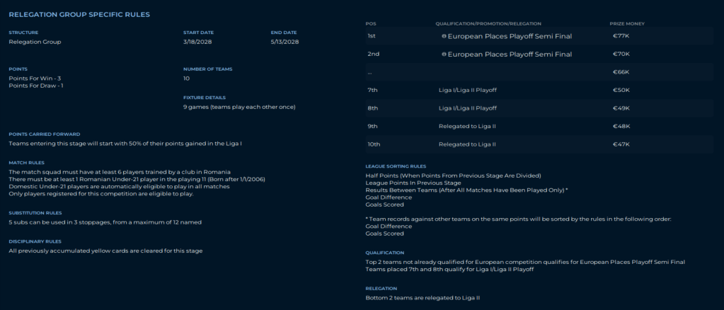 Why is this important? Because in Liga I 7th thru 16th go into the Relegation Group. In that 10 team group, 9th and 10th are automatically relegated. 7th and 8th go to a Liga I/Liga II Playoff.