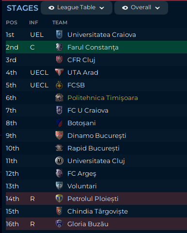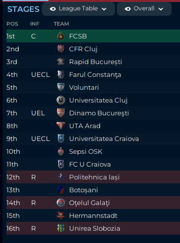 FCSB won the Cupa României, which is why they are going to the Europa League. But I will take a 9th place finish, now and for the next couple of seasons.