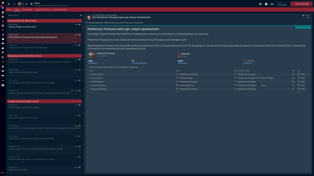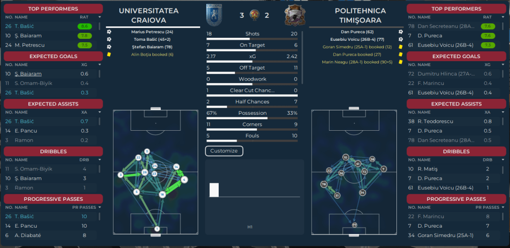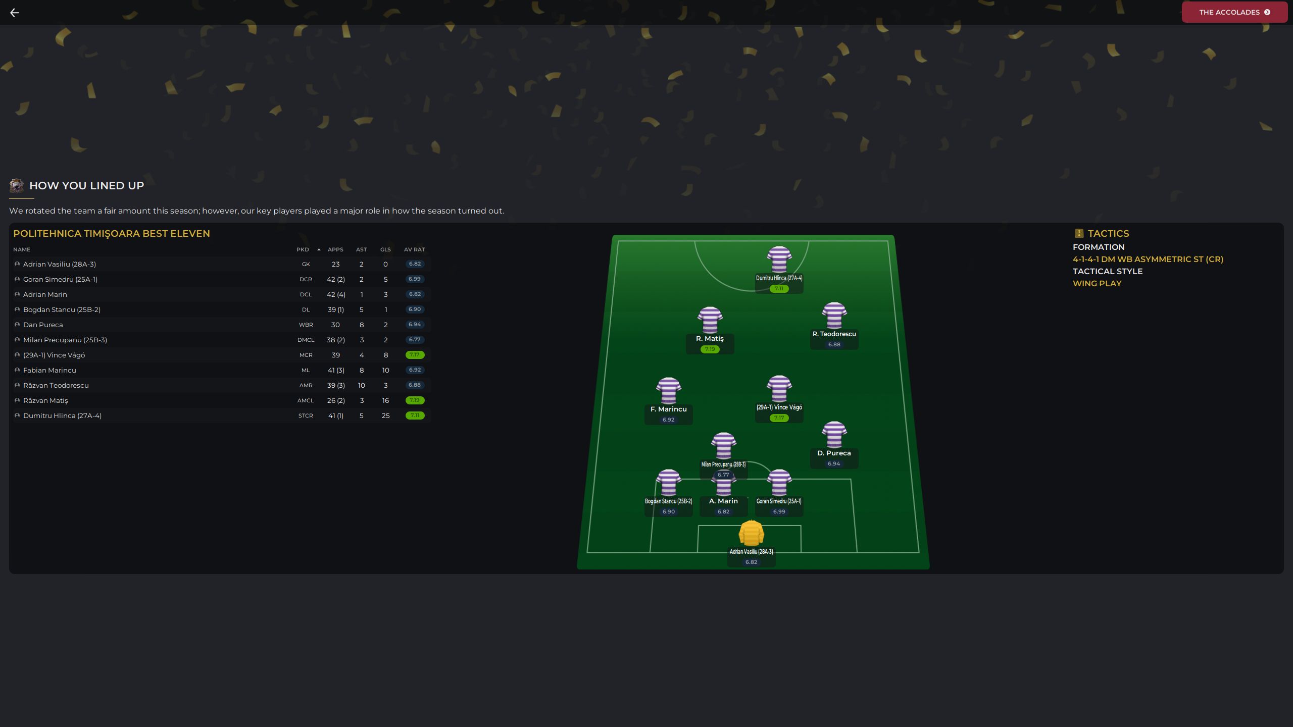 We played horribly at Arad, so a draw was not an unexpected result. The draw at Craiova was expected as well, the loss against FCSB not so much, but everyone in a Politehnica kit had a bad day that day. Our victories though, 4-1 against U Craiova, 2-0 against Rapid, 3-0 against Cluj, these are all solid to very good teams, and we handled them quite well. We are still using the 4-1-4-1 DM WB Asymmetrical, everyone knows it, is comfortable and familiar with it, and teams are still having issues dealing with it. I wanted to do well in the Cupa României this season, the board wanted us to get to the latter stages, and being in a somewhat weaker group certainly helped. It allowed me to rotate for some of the matches, and start some very promising youngsters.