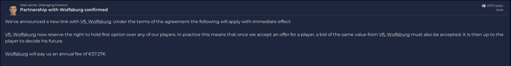 The minimum Fee clause is set by the agent, and they are very attainable for other clubs. I tried setting Jivan’s clause to €20M, and his agent countered with a locked offer for €3.2, which I had to accept or he could have left for a lot less. I could have taken it off and tried to get more money, but that’s a shake of the dice I am not willing to take.
